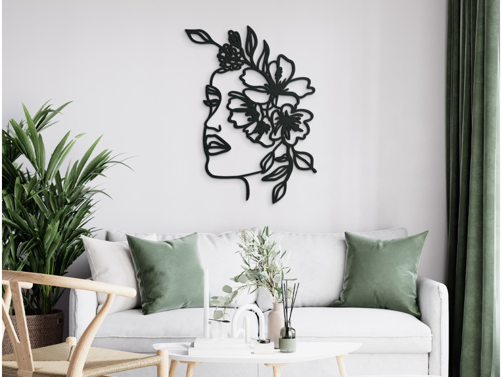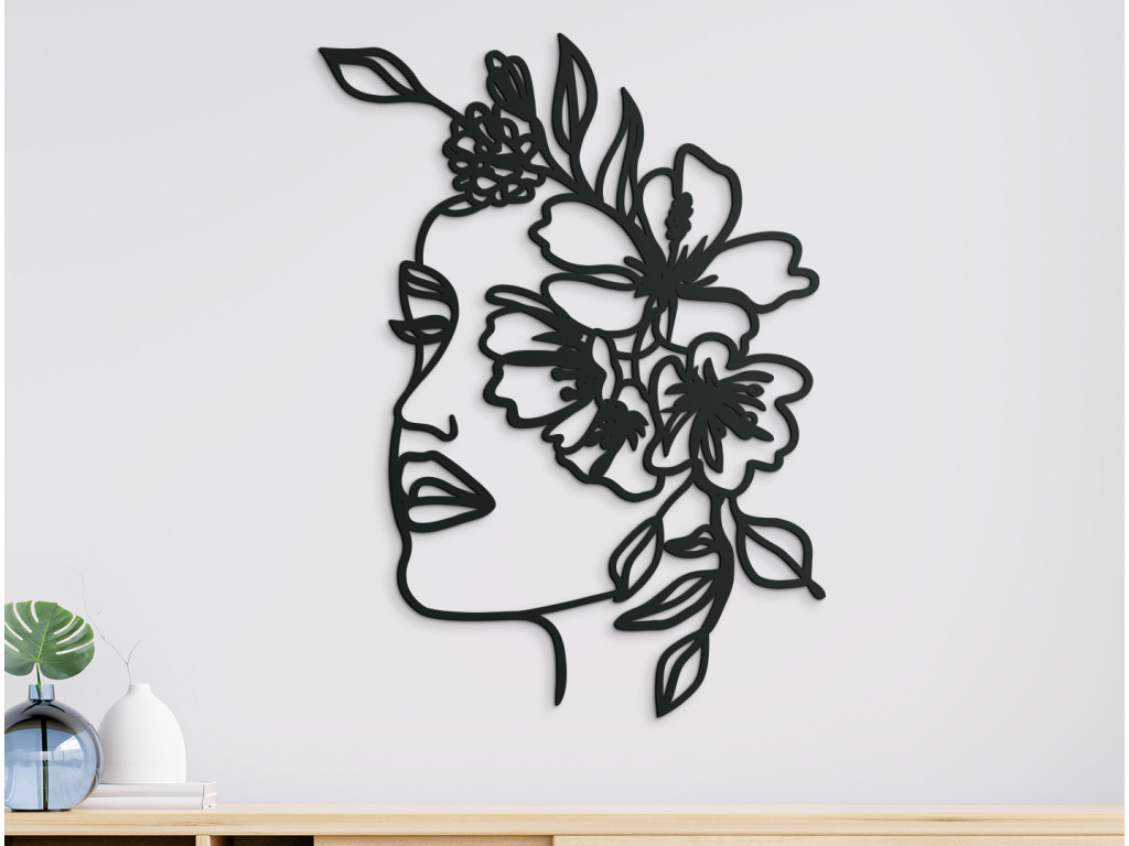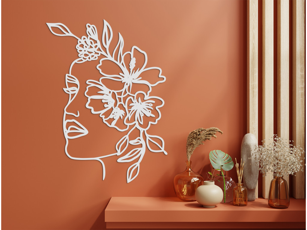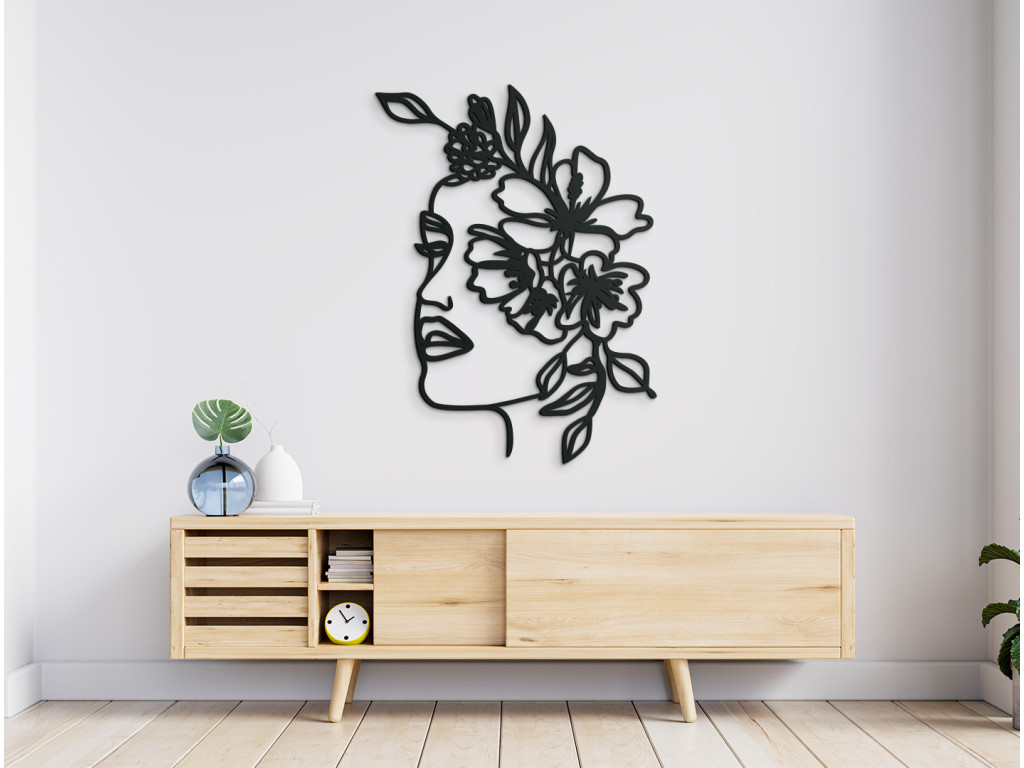 Elegáns, modern és időtlen. A Nő koszorúval fa matricáról van szó, amely bármilyen enteriőrbe illeszkedik. A festményen ábrázolt nő arcát virágok borítják. A dekoráció kis és nagy terekbe is alkalmas.