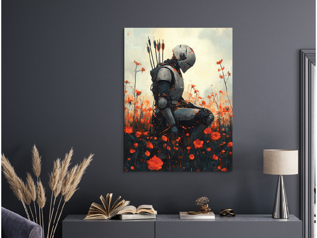 A Lovag a pipacsmezőn kép egy erőteljes szimbolikájú és drámai hangulatú alkotás – a magányos lovag alakja kontrasztban áll a tájat beborító piros pipacsok lágyságával. A bátorság és a törékenység ötvözete erős vizuális és érzelmi hatást kelt. A kép ideális olyan enteriőrbe, amelynek története van, és egyensúlyt keres az erő és a béke között.
