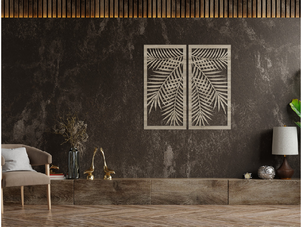 A fali, 2 részből álló Trópusi pálma fakép kellemes és dizájnos hangulatot hoz otthonába. A fakép minden modern és klasszikus enteriőrben kiemelkedik. Az egyes részek kapcsolódnak egymáshoz, de saját belátása szerint külön-külön is felakaszthatja őket.
