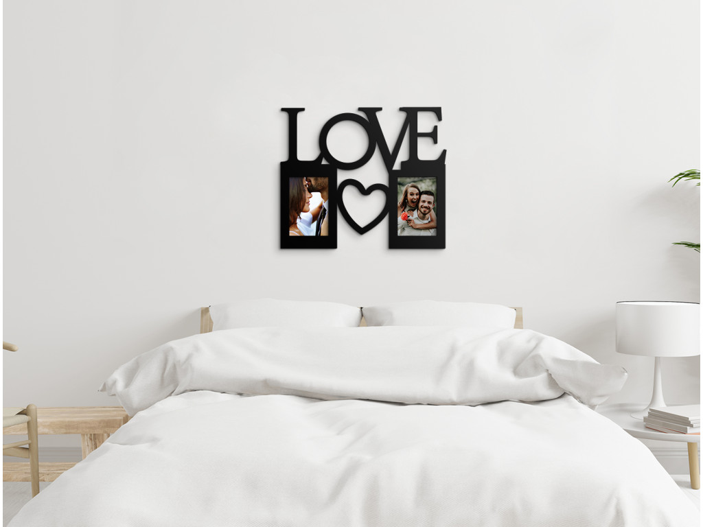 Fényképkeret 2 fényképhez, amelyeket szív és Love felirat köt össze. Ha egy üres fal felfrissítésének módját keresi, vagy párját szeretné megörvendeztetni egy különleges ünnep alkalmából, akkor ez a dekoráció az ideális megoldás. Nincs más dolga, mint kiválasztani a színes dizájnt, mi pedig gyorsan elkészítjük az ön számára a a képkeretet fadobozban, hogy mielőbb előbb gyönyörködhessen benne.