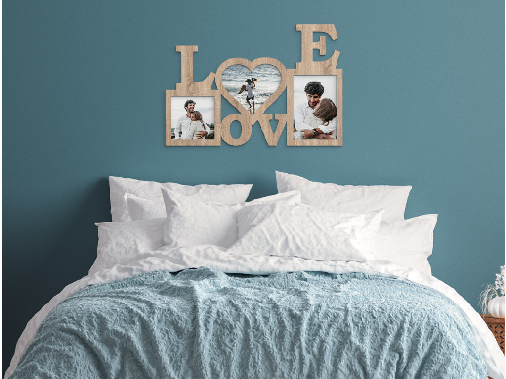 A fali Love feliratú képkeret tökéletesen illeszkedik a belső tér többi részéhez – akár a nappali falára, akár az ágy fölé a hálószobában, akár a folyosón szeretné felragasztani a képkeretet. 3 fényképnek van helye, amelyek közül a középsőt közvetlenül a szívbe helyezheti. A termék csak keretből áll, nem tartalmaz üveget vagy egyéb anyagot.
