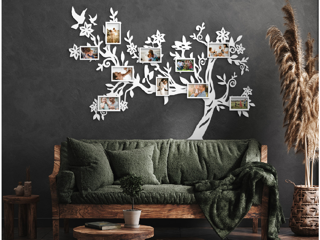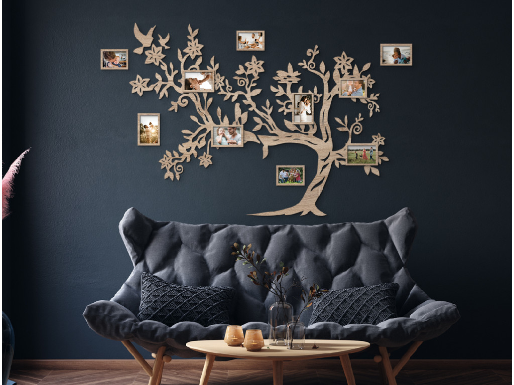 Az életfa szimbolikája teljesen új dimenziót kap, ha családi élet fotóival díszíti. Egyedi, fából készült képkereteinket 3 méretben gyártjuk, és mindegyik változat különböző számú, szabvány méretű fotó számára biztosít helyet. Így a legszebb emlékekkel varázsolhatja otthonát meghitt hangulatúvá. A természetes dekoráció 8 színárnyalatban érhető el.