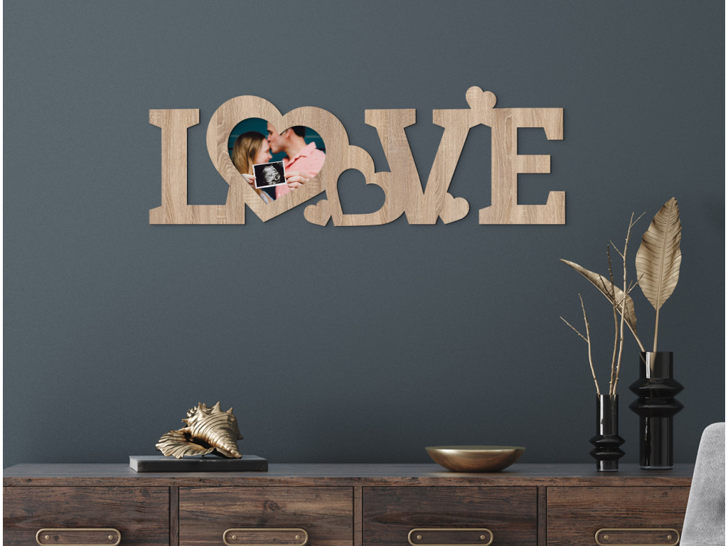 Fényképkeret egy fényképhez az angol "Szerelem" felirattal. Van egy kedvenc pillanata a párjával? Keretezze be fa képkeretünkbe, és helyezze látható helyre.