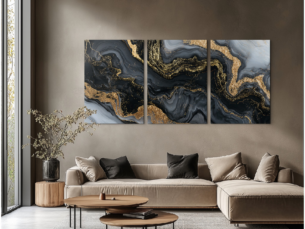 A Háromrészes Noblesa márványkép absztrakt vonalakat és márványhatást kombinál, így egyedi, luxus fali akcentust hoz létre. Az UV nyomat kiemeli a részleteket és a színeket, amelyek hűen utánozzák a márványfelületet. Modern és elegáns kiegészítő, amely világosságot, dinamizmust és stílusos karaktert ad a térnek. Ideális választás a minimalizmust és a luxust kedvelők számára.