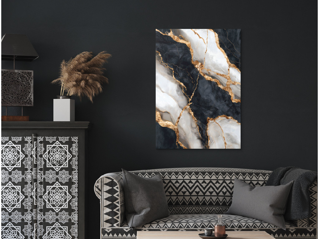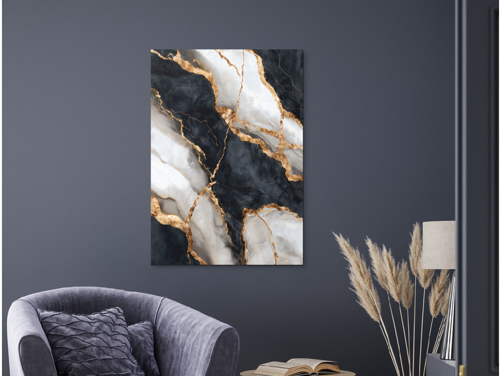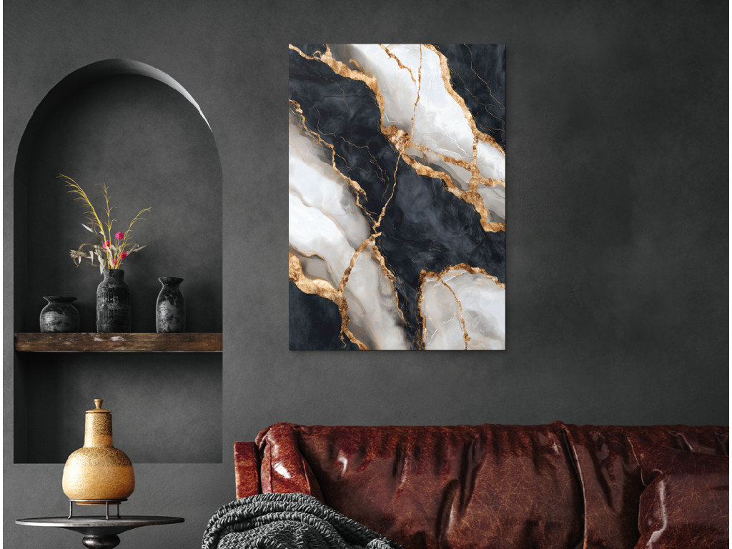 A Márványkép Átfolyás elegáns kiegészítő, amely a márvány luxus megjelenését és a modern UV nyomat előnyeit egyesíti. A valódi márványhoz képest alacsonyabb árat, egyszerűbb felszerelést és semmilyen karbantartást nem igényel, mégis ugyanolyan prémium és stílusos hatást kelt. A fekete és fehér tónusok arany részletekkel kontrasztos, modern hatást hoznak létre, amely bármelyik enteriőrt feldobja. Engedd be az elegancia érintését és a tartós szépséget.