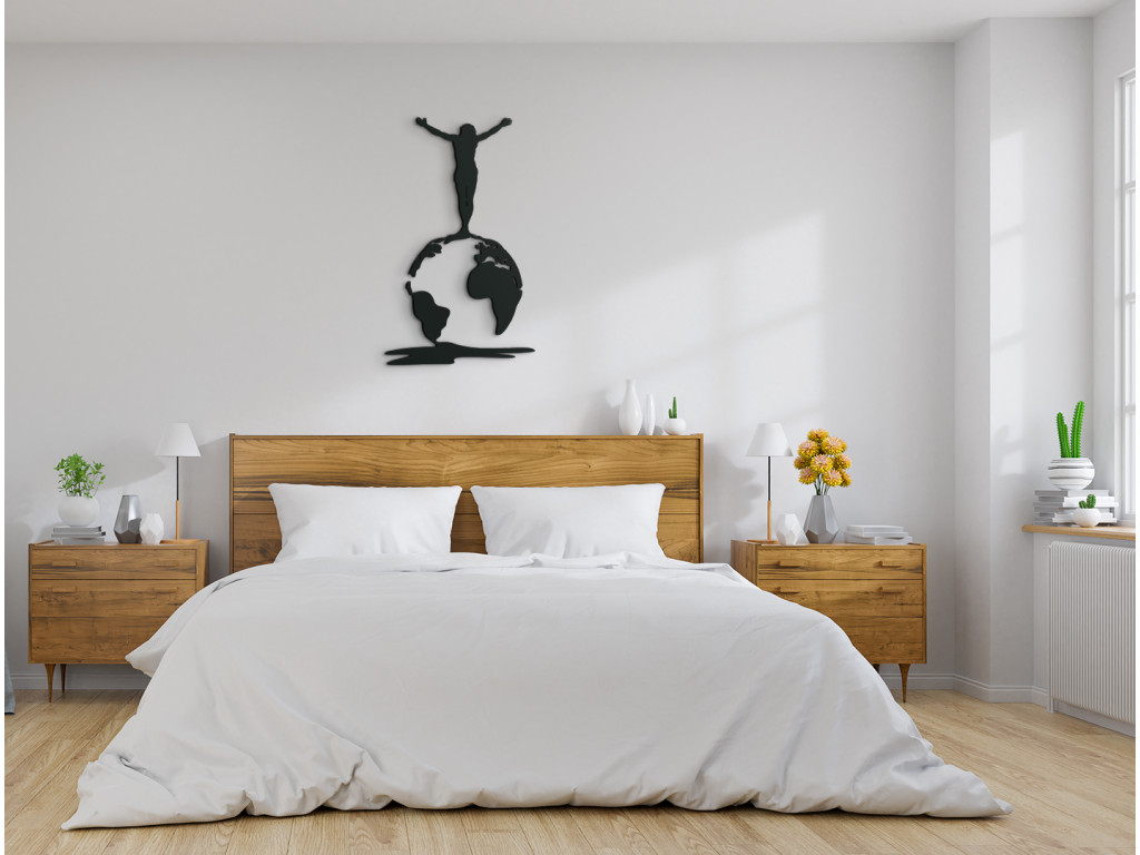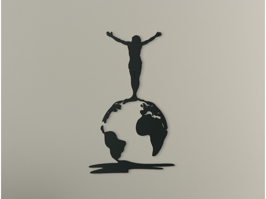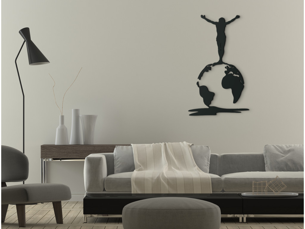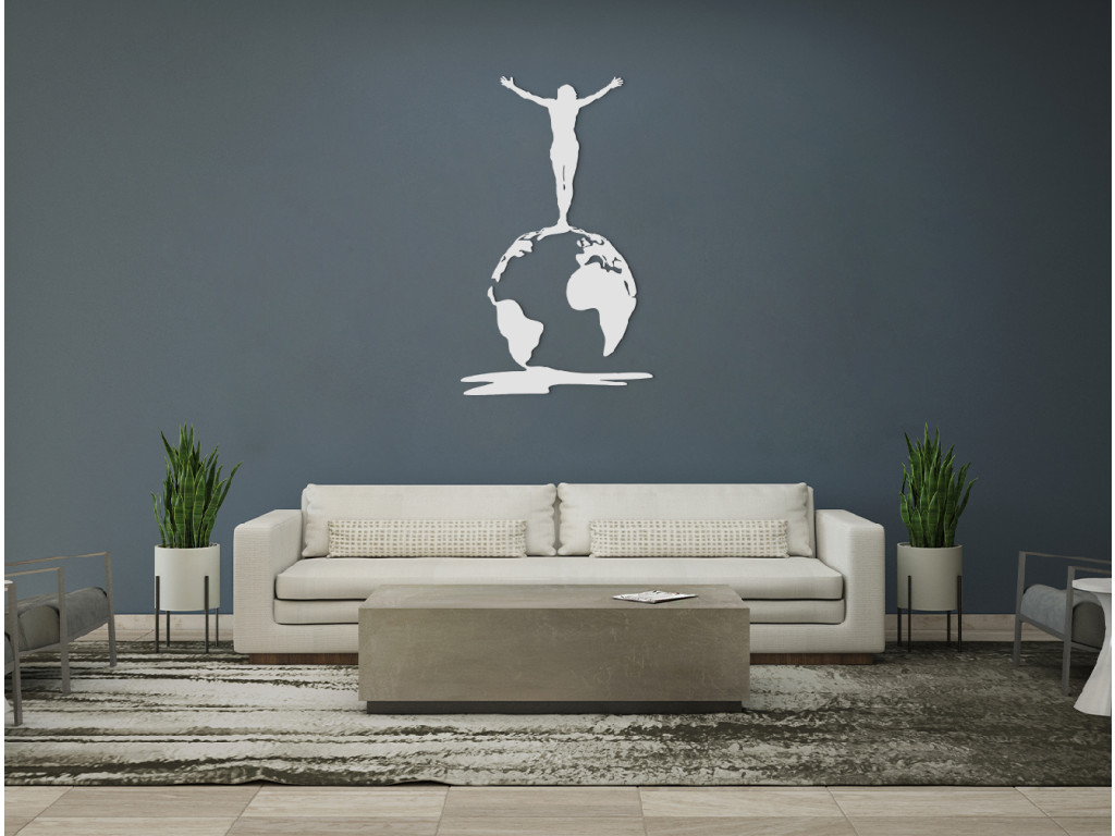 A keresztre feszített Jézus képe mély elmélkedésre hívja az egész emberiséget. Ezért van a matricán Krisztus az egész Föld felett ábrázolva. A dekoráció illeszkedik a modern és a klasszikus belső terekhez. A modern kialakítású kép csodálatos kiegészítője a nappalinak, a konyhának, a folyosónak. A dekoráció nyugodt hangulatot kölcsönöz a belső térnek.