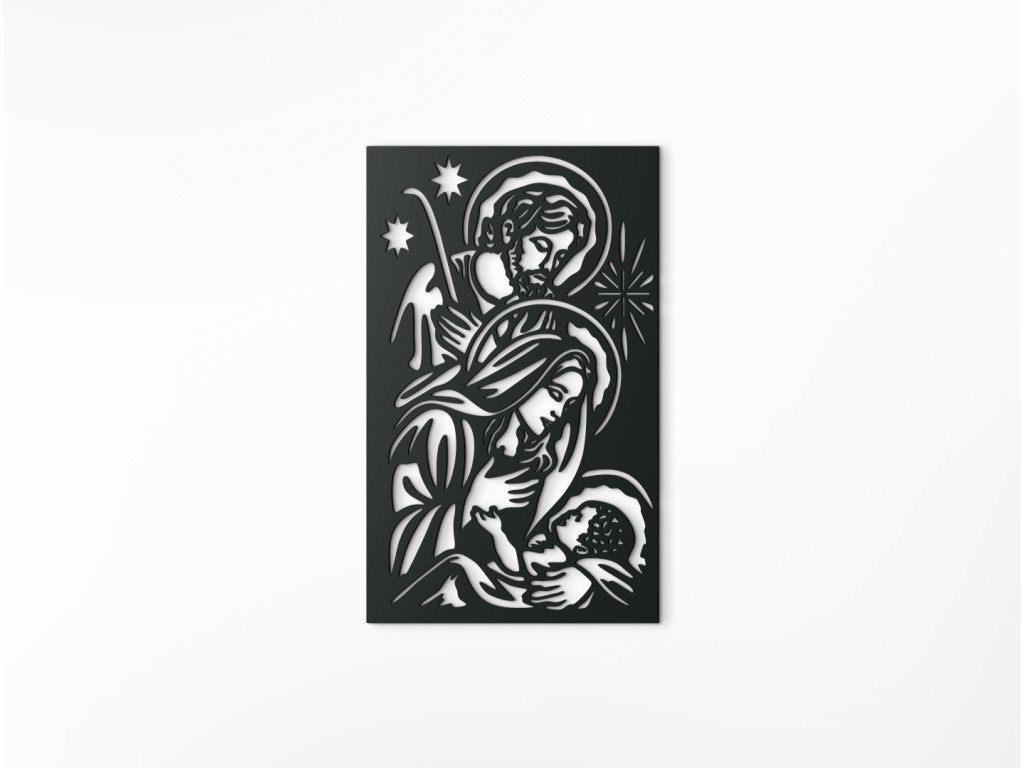 A faragott Betlehem gyönyörűen ábrázolja Jézus születését. A kép Jézus édesanyját, Máriát és Józsefet is ábrázolja, akik a kisdedet nézik. A betlehemi fakép nappali vagy hálószoba falára is megfelelő dekoráció.
