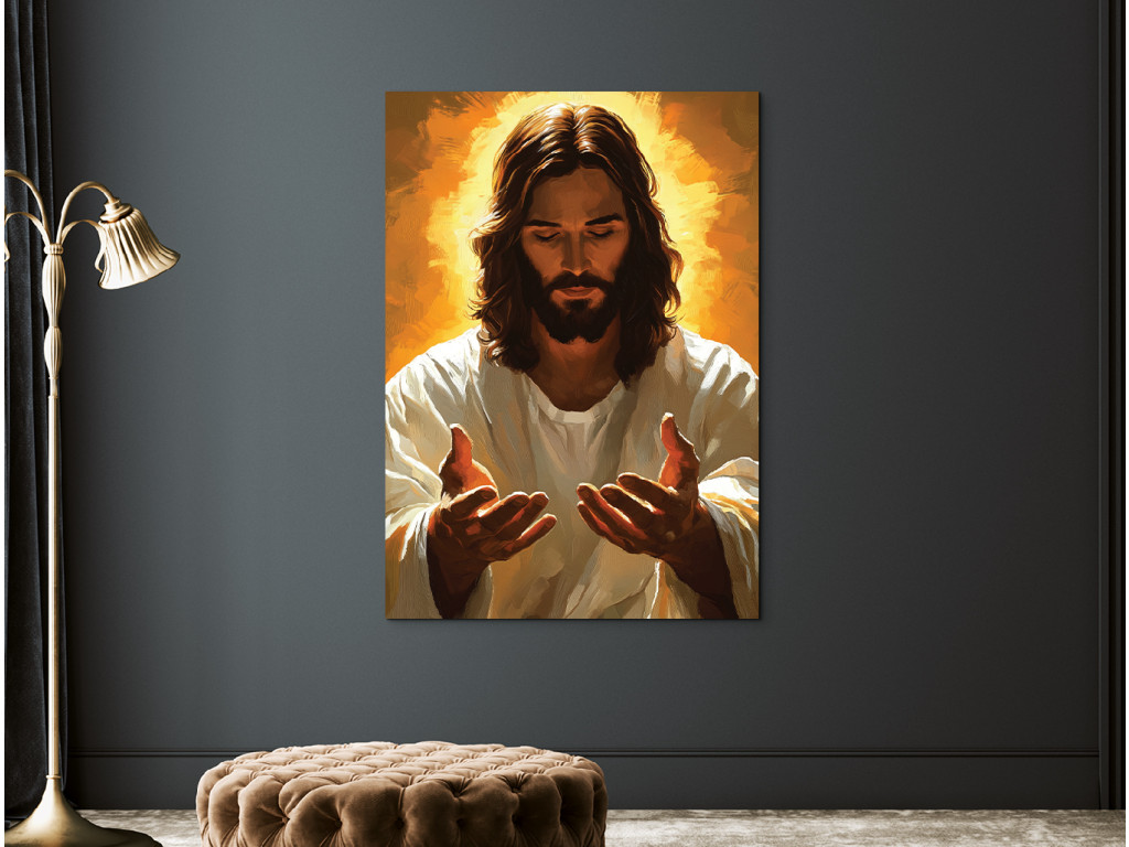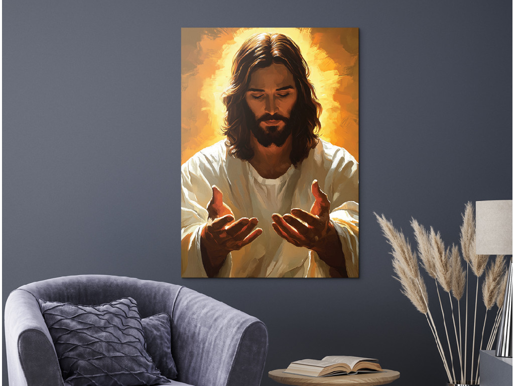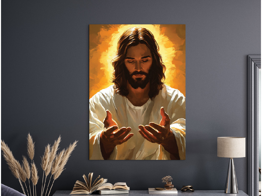 A festmény Jézust csendes imádkozás közben ábrázolja, lágy fény veszi körül, amely kiemeli békés arckifejezését. A légkör alázatot és lelki koncentrációt áraszt, az egész kompozíció pedig bensőséges betekintést nyújt a mély hit és megadás pillanatába.