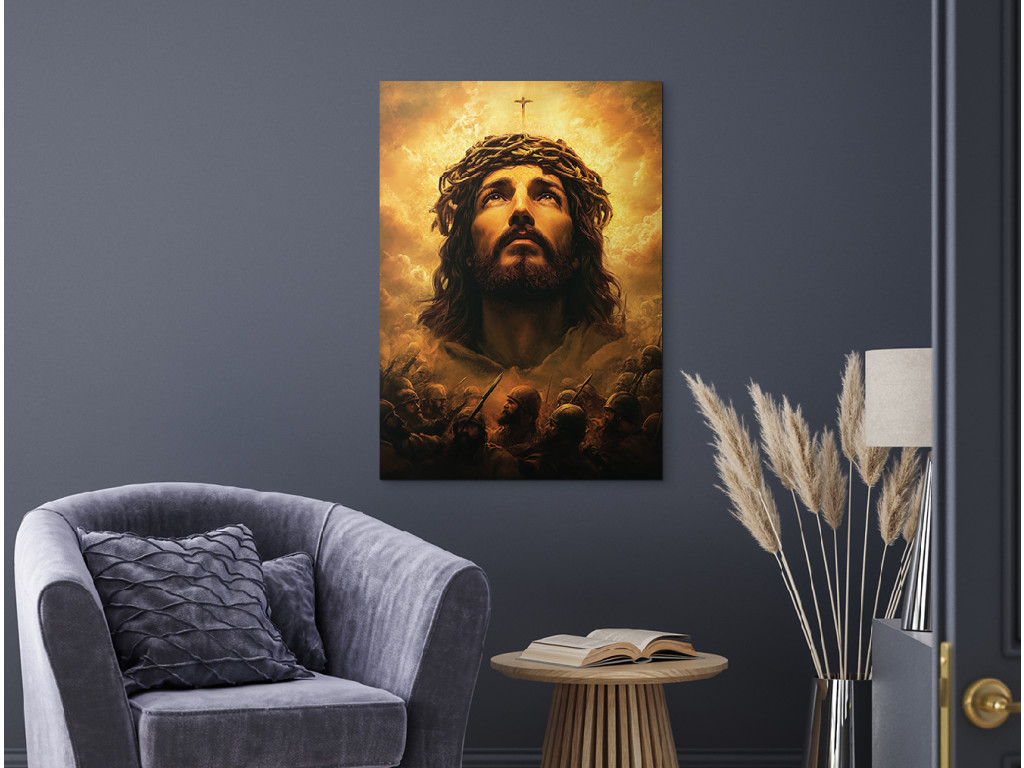 A Krisztus odaadó tekintete kép Jézus Krisztust ábrázolja töviskoronával, amint alázattal és odaadással tekint az ég felé. Tekintete tele van belső fájdalommal, de egyben reménnyel és az Atyához intézett kéréssel is. Az arckifejezés, a fentről érkező fény és a tompa színek kiemelik a lelki erőt és az Istennel való kapcsolat intim pillanatát.