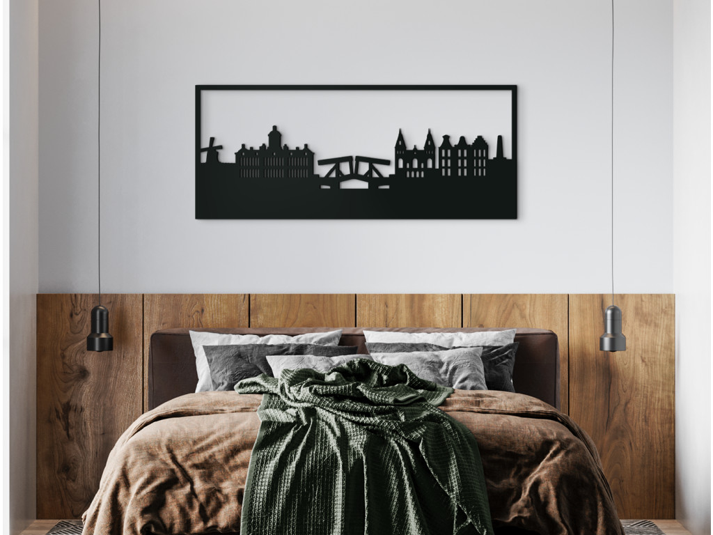 Hollandia fővárosát a 12. század végén alapították. Egy kis halászfaluból metropolisz lett, amely pénzügyi és kulturális központ. Szélmalmokról, színes tulipánokról, számos csatornáról, kerékpárokról és éjszakai életről ismert. A fából készült panorámában tartósan megörökítettünk jellegzetes szimbólumokat és valamit a város történelmi építészetéből. Az Amszterdam festmény így 3 méretben és változatos színpalettában díszítheti belső terét.