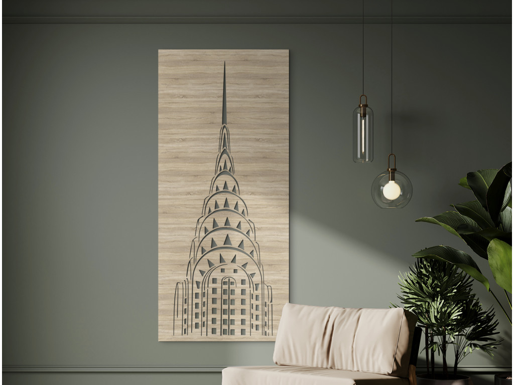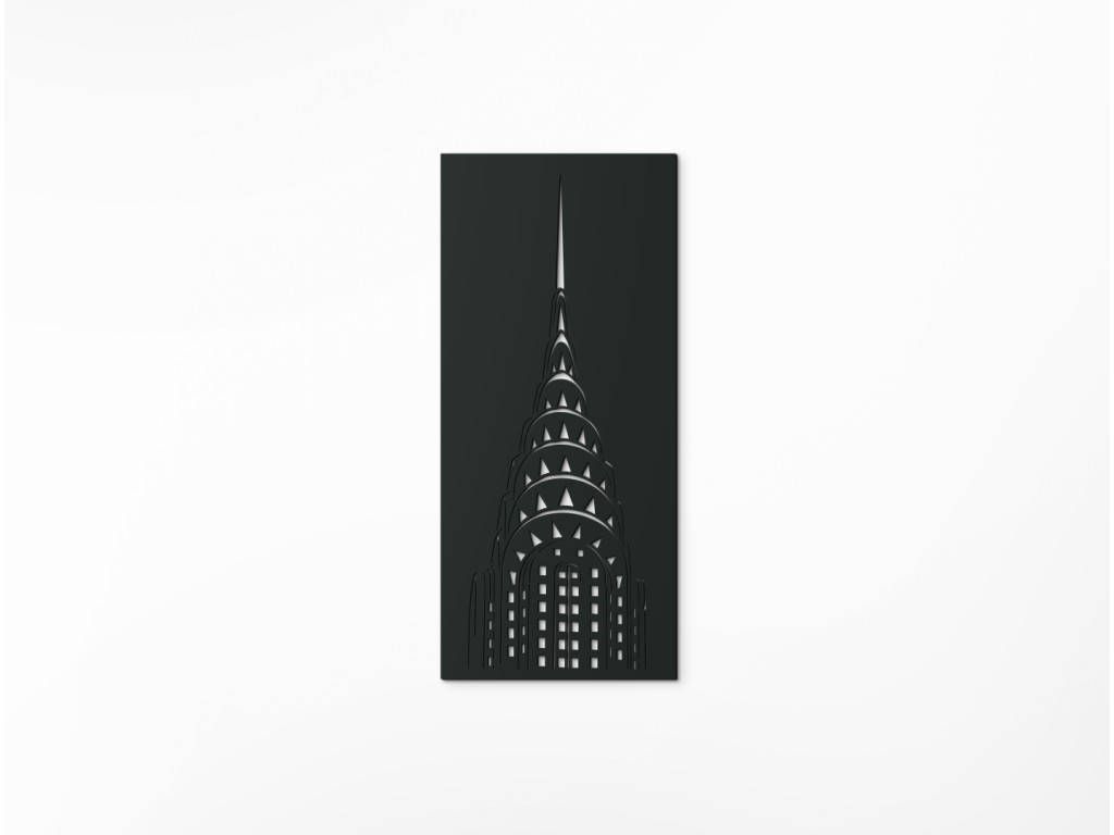 A manhattani East Side egyik felhőkarcolója kiemelkedik a többi közül. A világon elsőként érte el a 319 métert, és csatlakozott New York leghíresebb szimbólumaihoz. Ma a 12. legmagasabb a városban, és könnyen felismerhető az épületek látképéről az Art Deco építészeti stílusú acélíves hegyes tornyának köszönhetően. A Chrysler Building fakép 3 méretben és 8 dekorban, karakteres vonalakon keresztül, kitöltött keretben mutatja be a felhőkarcolót.
