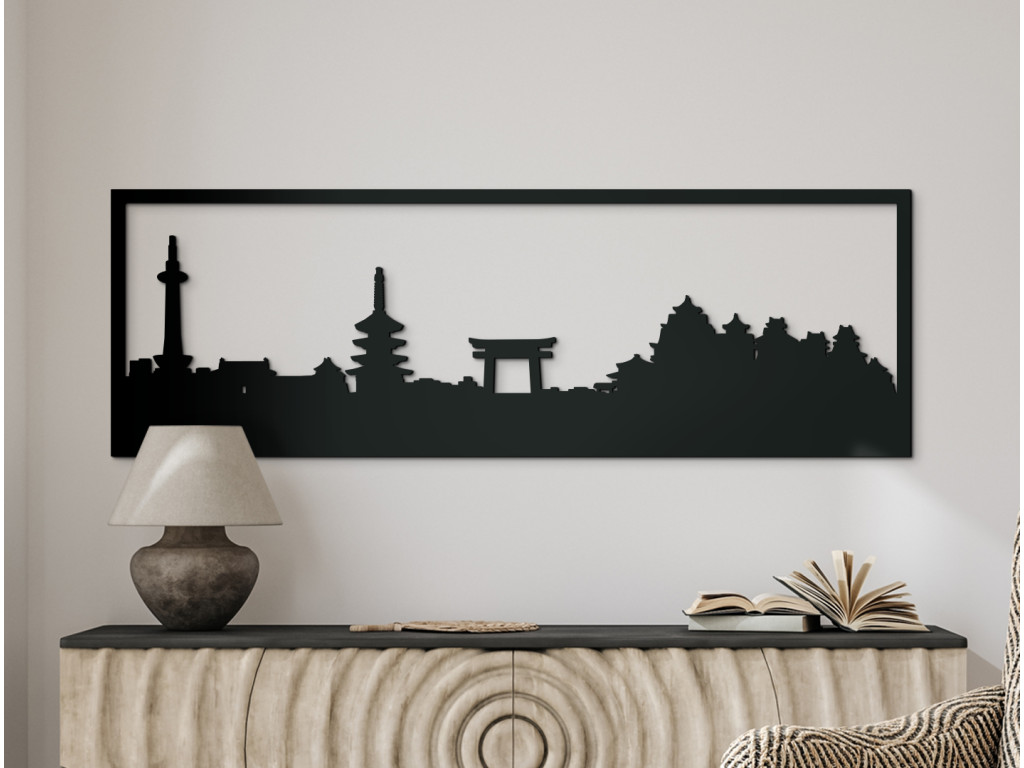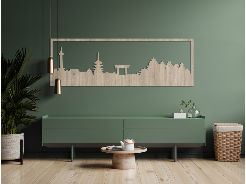 Felismer néhány kiotói épületet és emlékművet pusztán a sziluettjükről? Akár csak álmodozik, hogy meglátogatja őket, vagy már megtervezte az utazási terveit, a kiotói faképünk egyedi panorámát rögzít az Ön számára legérdekesebbekről. Ide tartozik a mérföldkőnek számító Kyoto-torony, a buddhista Toji-templom, a Fushimi Inari-taisha szentély vörös kapui, a Kinkakuji-templom, a Kijomizu-dera, a császári palota, a gésákról híres Pontocho és Japán sok más gyöngyszeme. Panorámás szélességének köszönhetően a dekoráció kiválóan alkalmas a kanapé, TV, ágy feletti szabad hely kitöltésére az irodában vagy a folyosón.