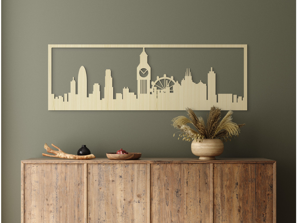 Piros telefonfülkék, postaládák, emeletes buszok, fekete taxik és zászlók. Ez csak néhány tipikus londoni szimbólum. A Temze-parti város London fából készült képét örökíti meg, melynek köszönhetően domináns tárgyai az Ön belső terét is díszíthetik. Anglia és az Egyesült Királyság fővárosának legszebb szegletei így egy eredeti, széles panorámában örökíthetők meg 3 méretben és 8 dekorban.