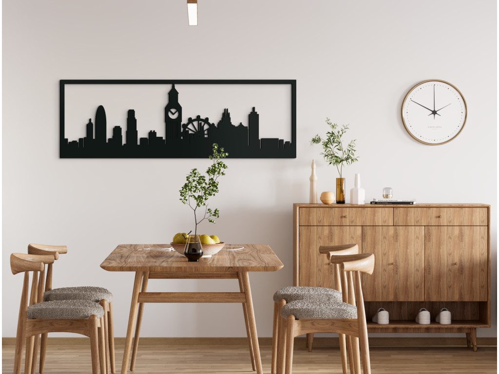 A modern építészet és a The Gherkin felhőkarcoló (fordítva: Uborka) a hivatalos név 30 St. határozottan ezek közé tartozik Mary Axe, The Shard, 20 Fenchurch Street és így tovább. A kép közepén a Westminsteri Palota 96 méteres tornya, az Elizabeth Tower, ismertebb harangja, a Big Ben, valamint a világ harmadik legnagyobb óriáskereke, a London Eye áll, amelyből 135 m magasságból látni rá a városra. Ha a minimalista dizájn helyett inkább a kidolgozottabb részleteket részesítené előnyben, ne hagyja ki London arculatát, amely a fent említett látnivalókon kívül a Tower Bridge-t, a St. Pál-székesegyház és a Westminster-apátságot is ábrázolja.