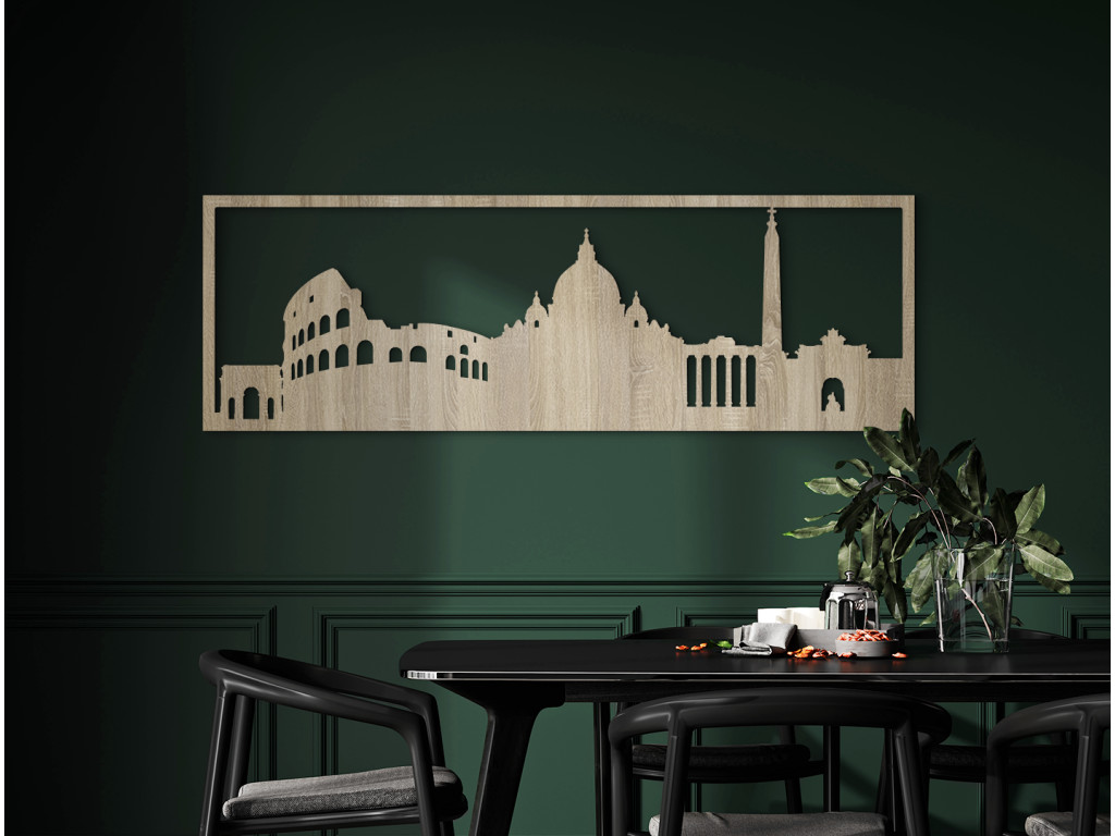 Az örök város és Európa egyik legnagyobb metropoliszának története 2800 éves múltra tekint vissza. Nem csoda, hogy tele van történelmi épületekkel, kulturális emlékekkel és látnivalókkal. Olaszország fővárosának egyedi karaktere van, amit a dekoráción keresztül próbáltunk megörökíteni panoráma felbontásban. Róma képe így 3 méretben és 8 faárnyalatban foglalja össze a leghíresebb nevezetességeket.