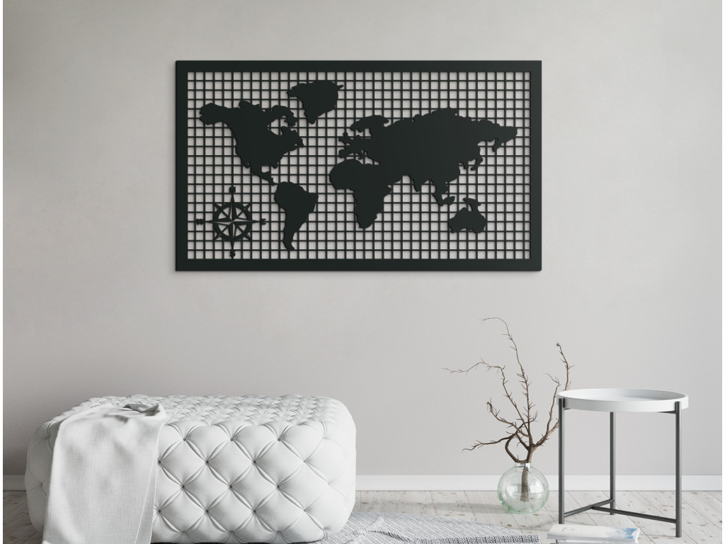 Ön az utazás szerelmese? Akkor nem hiányozhat lakásából egy fából készült világtérkép. A minőségi anyagból kivágott kontinensek vízszintes és függőleges vonalakra kerültek. A sarokban iránytű helyezkedik el. A téglalap alakú kép kiemelkedik az irodahelyiségekben, a nappaliban, a hálószobában és az előszobában. Nagyszerű ajándékötlet.