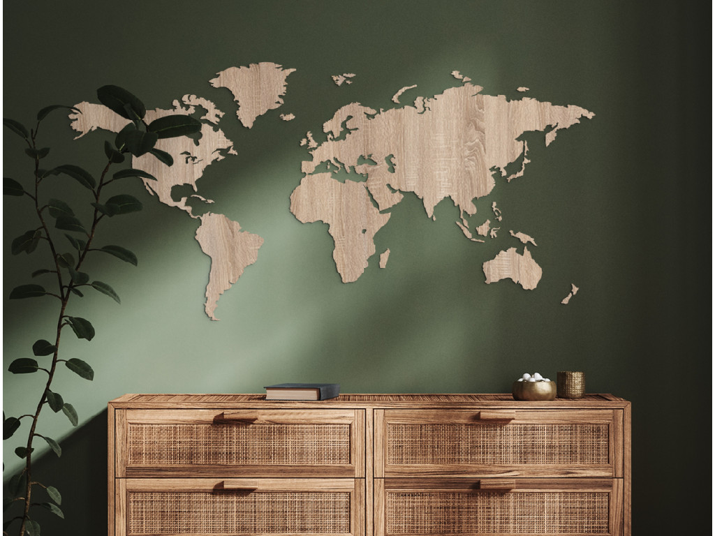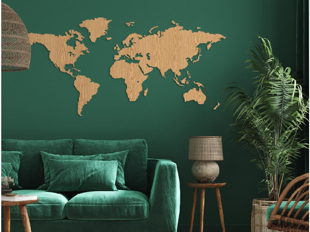 Az utazás és a modern dekoráció szerelmeseinek egy egyedi fali világtérképet készítettünk. A világ egyes részei, szigetei vannak ábrázolva a térképen, amit a sablonnak köszönhetően könnyedén felragaszthat a nappaliban, diákszobában, irodában. A világ atlasza tökéletesen megtervezett, és szokatlan minimalista stílusával bármely helyiségben kitűnik. Vágjon bele egy kalandos utazásba!